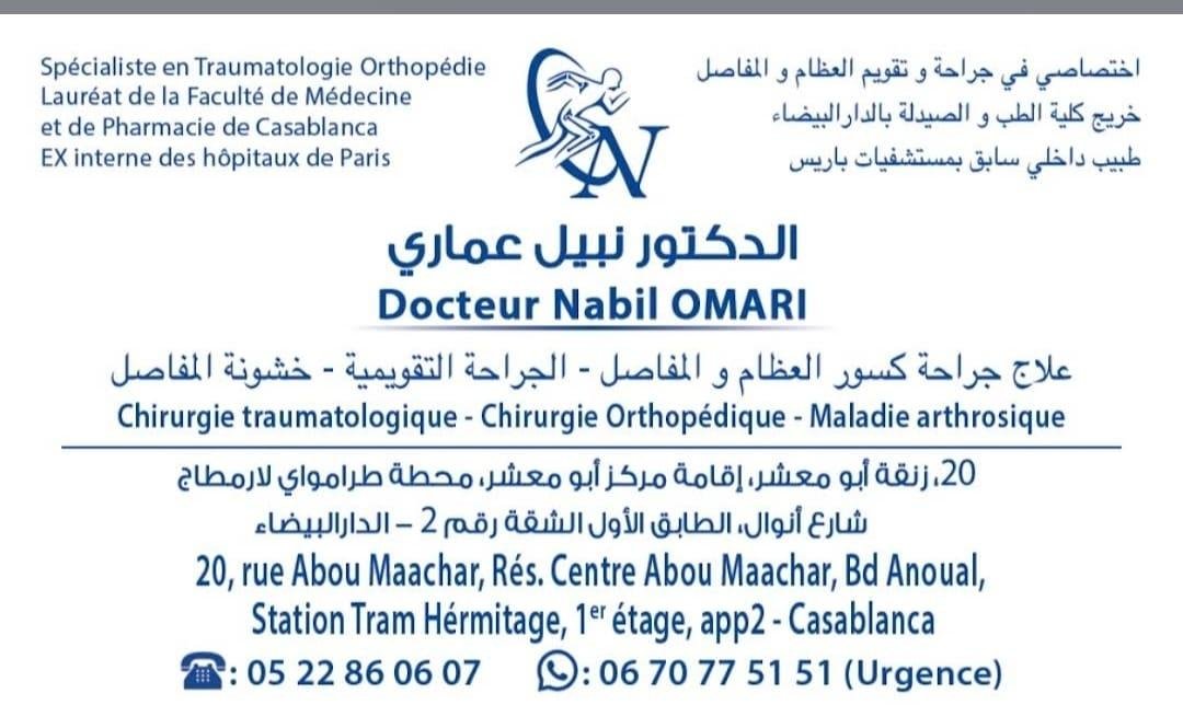 Cabinet de Traumatologie et Orthopédie et Médecine de sport Dr Omari Nabil